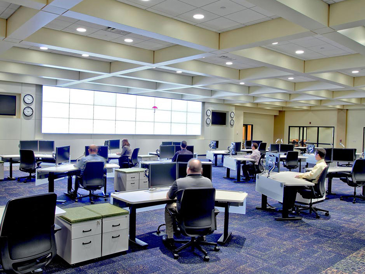 The New IT Network Operation Center is on the first floor of 300 Windsor Street and consisted of a complete renovation of the former data center and office space. The IT Center has a full monitor wall to track national IT issues and double monitor workstations with adjustable seating and desk heights.
